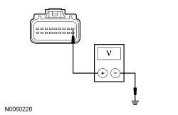 - Measure the voltage between the OCSM (Occupant Classification System Module) C3159-1, circuit CBP41 (BU), harness side and ground.