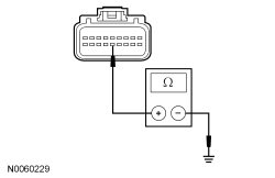 - Measure the resistance between the OCSM (Occupant Classification System Module) C3159-14, circuit GD143 (BK/VT), harness side and ground.