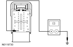 - Measure the resistance between the BCM (Body Control Module) C2280D-25, circuit GD133 (BK) harness side and ground.