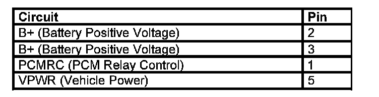 Powertrain Control Module Power (PCM Power) Relay Connector