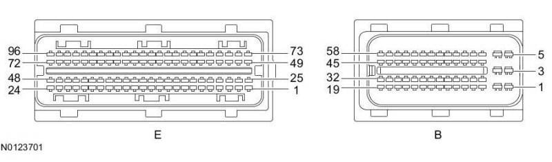 Powertrain Control Module (PCM) Connector - For PCM connector views or reference values, refer to Reference Values.