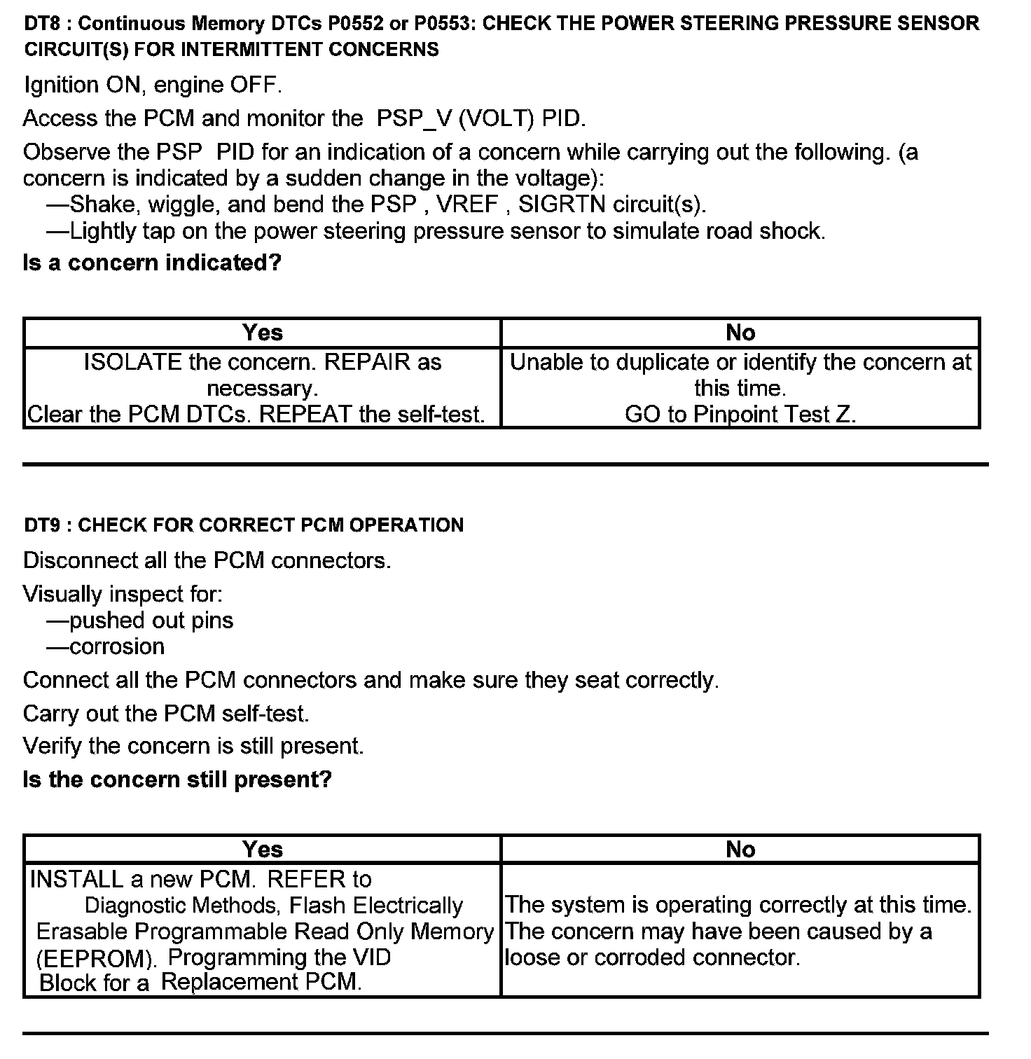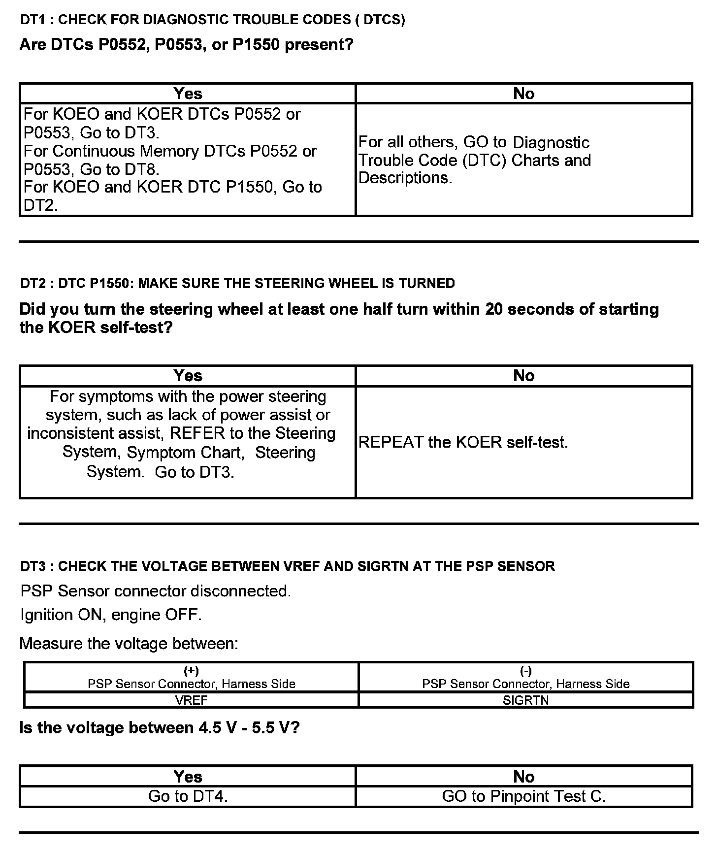 Test DT: Power Steering Pressure (PSP) Sensor