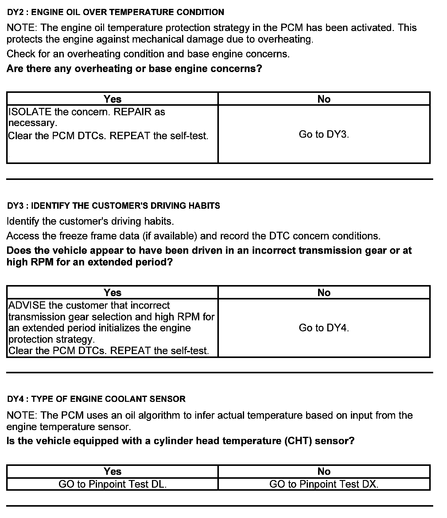 Test DY: Engine Oil Temperature (EOT) Sensor