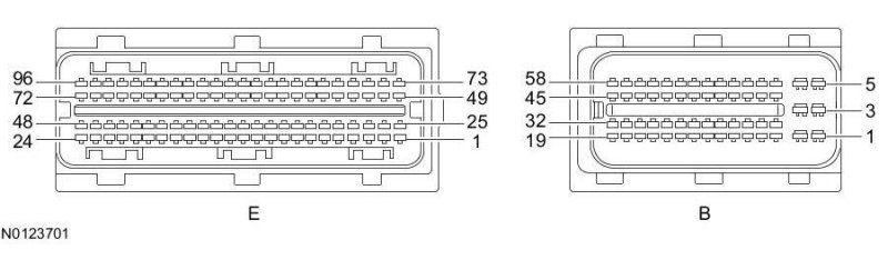 Powertrain Control Module (PCM) Connector - For PCM connector views or reference values, refer to Reference Values.