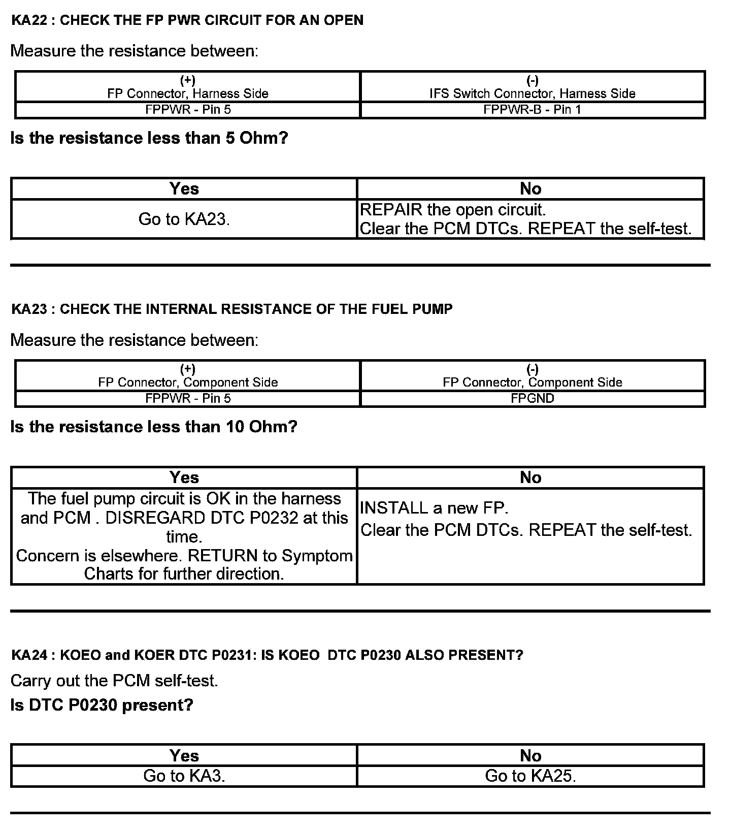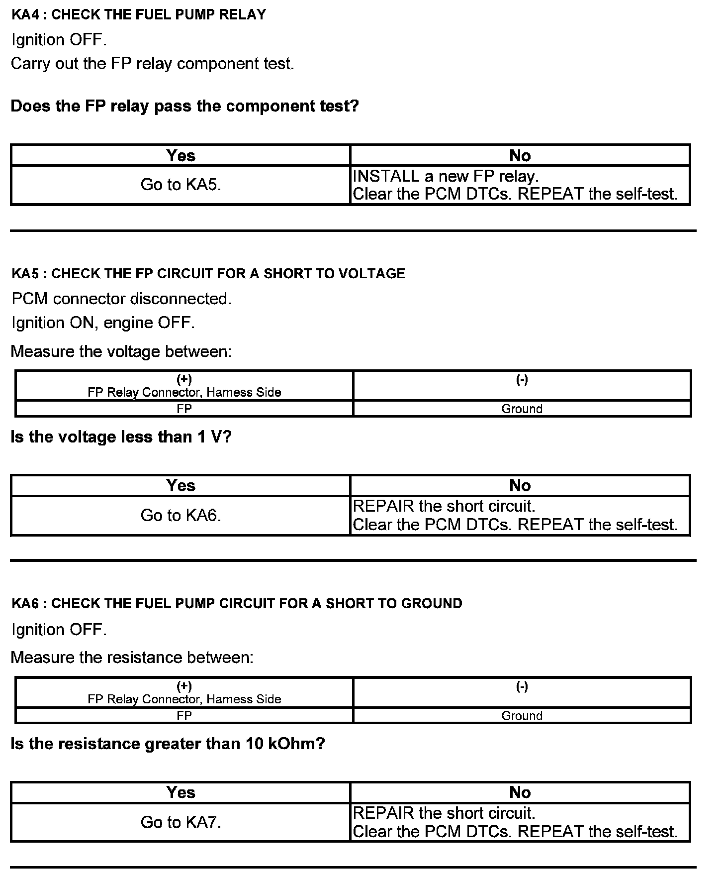 Test KA: Fuel Pump (FP) Relay