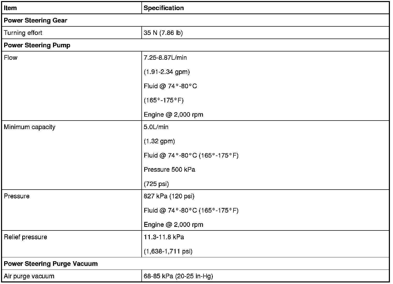 Pressure, Vacuum and Temperature Specifications