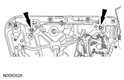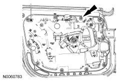 NOTE: The front window motor must be de-initialized, then initialized whenever the LH or RH (MKX) or LH (Edge) front window motor is removed from the window regulator drum housing, a new window regulator is installed, a new window glass is installed, a new top run is installed or for any operation in which grease or lubricants are applied to the window regulator or glass run.