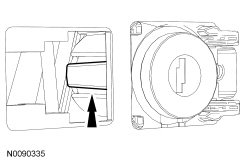 15. Using a suitable tool, release the retaining tab and remove the front door lock cylinder.