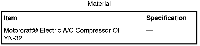 NOTICE: Motorcraft(R) Electric Compressor Oil only must be used as a refrigerant system lubricant for hybrid vehicles. Addition of any oil other than Motorcraft(R) Electric Compressor Oil to the hybrid vehicle refrigerant system will damage the electric Air Conditioning (A/C) compressor and contaminate the refrigerant system. Refer to the Refrigerant Oil Adding procedure.
