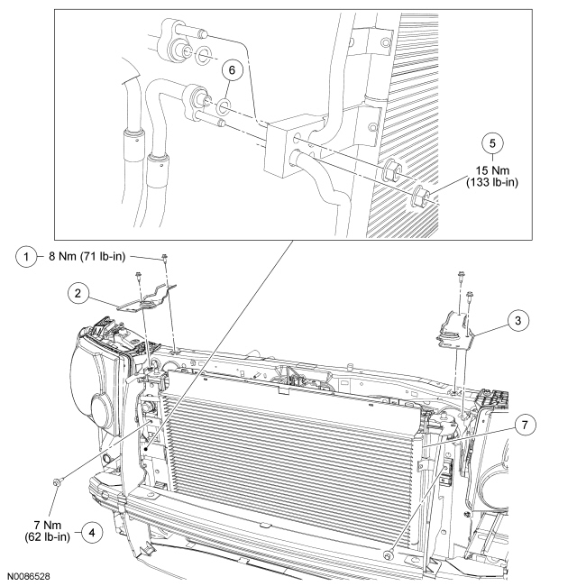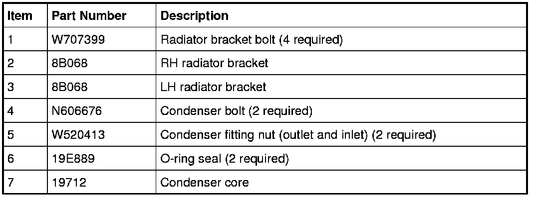 NOTE: If a condenser core leak is suspected, the condenser core must be leak tested before it is removed from the vehicle.