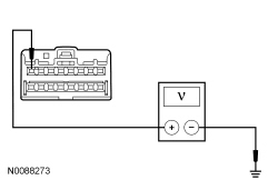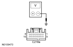- For a concern with the VOL-, VOL+, SEEK-, SEEK+, or MEDIA switches, measure the voltage between the clockspring C218-8, circuit VME14 (GY/YE), harness side and ground.