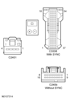 - Disconnect: ACM (Audio Front Control Module) C240B (Vehicles Without the SYNC System) or APIM (Accessory Protocol Interface Module) C3338 (Vehicles With the SYNC System).