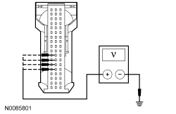 - Measure the voltage between the APIM (Accessory Protocol Interface Module), harness side and ground as follows: