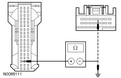 - Measure the resistance between the APIM (Accessory Protocol Interface Module) C3338-4, circuit RMN14 (GY/BN), harness side and the ACM (Audio Front Control Module) C240B-5, circuit RMN14 (GY/BN), harness side; and between the APIM (Accessory Protocol Interface Module) C3338-4, circuit RMN14 (GY/BN), harness side and ground.