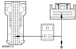NOTICE: This pinpoint test step directs testing circuits using a back-probe method. Use the special back-probe tool specified in the tool list. Do not force test leads or other probes into connectors. Adequate care must be exercised to avoid connector terminal damage while ensuring that good electrical contact is made with the circuit or terminal. Failure to follow these instructions may cause damage to wiring, terminals, or connectors and subsequent electrical faults.