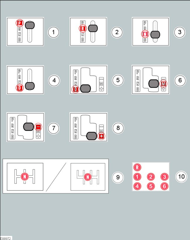 Gearshift lever position symbols are used to show the gear position required for the procedure.