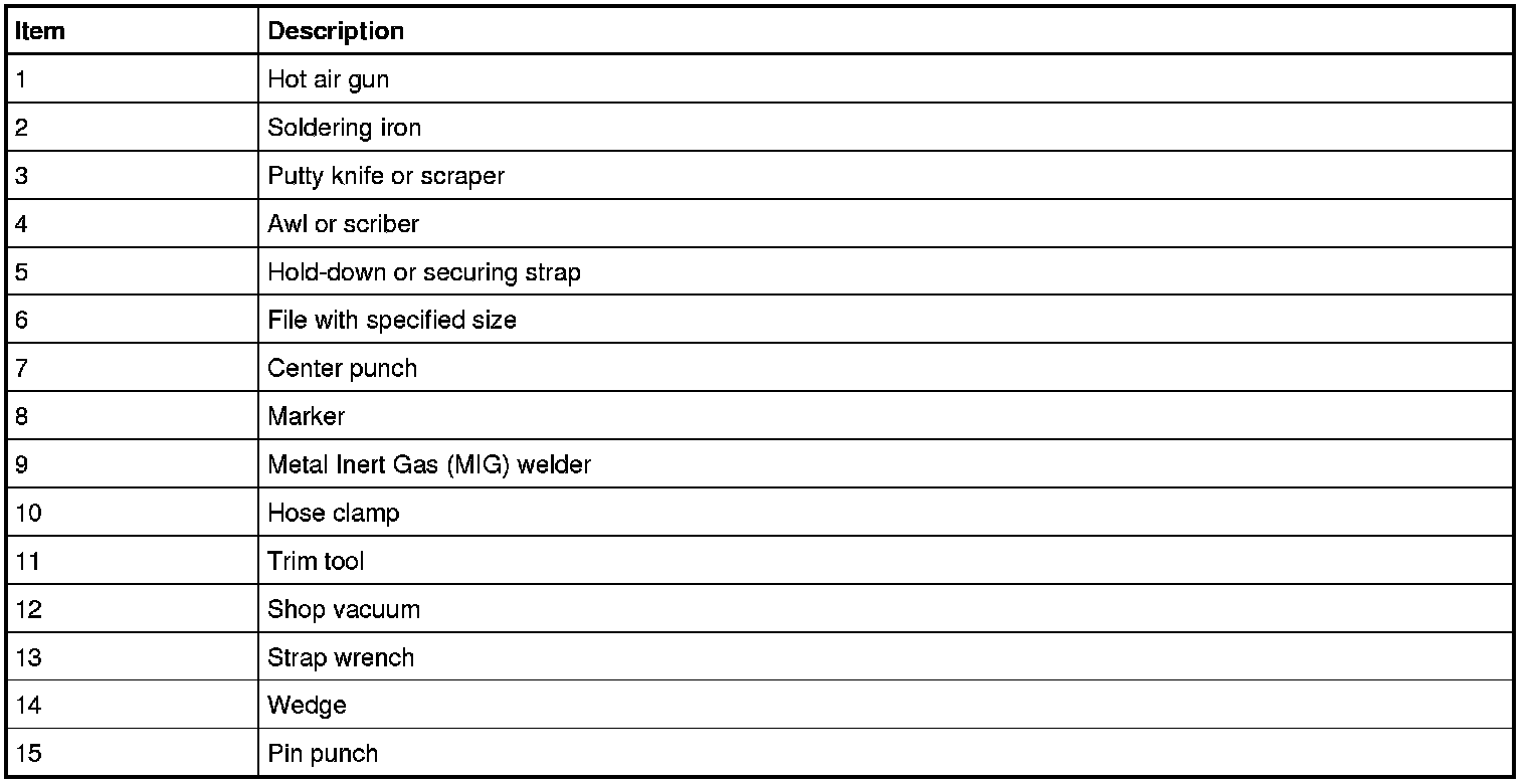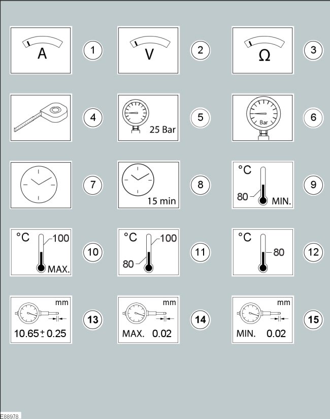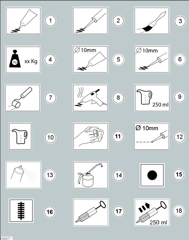 The general equipment symbols specify which general equipment is used to carry out the procedure.