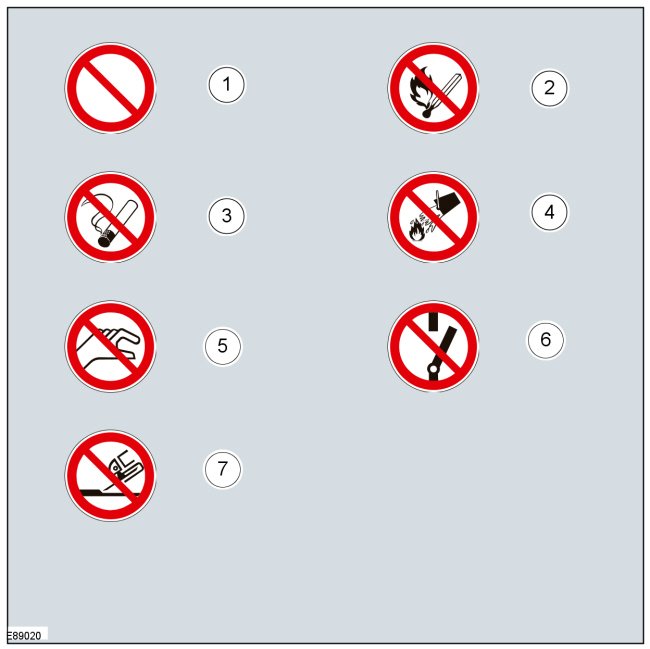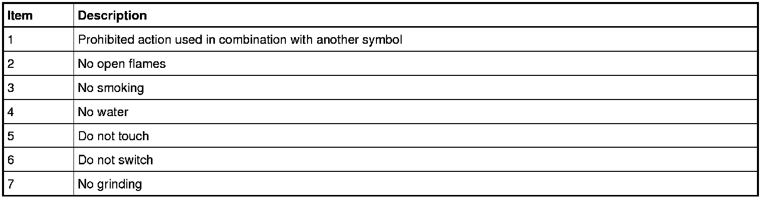 The prohibition symbols are used to prohibit specified actions to avoid safety hazards or component damage.