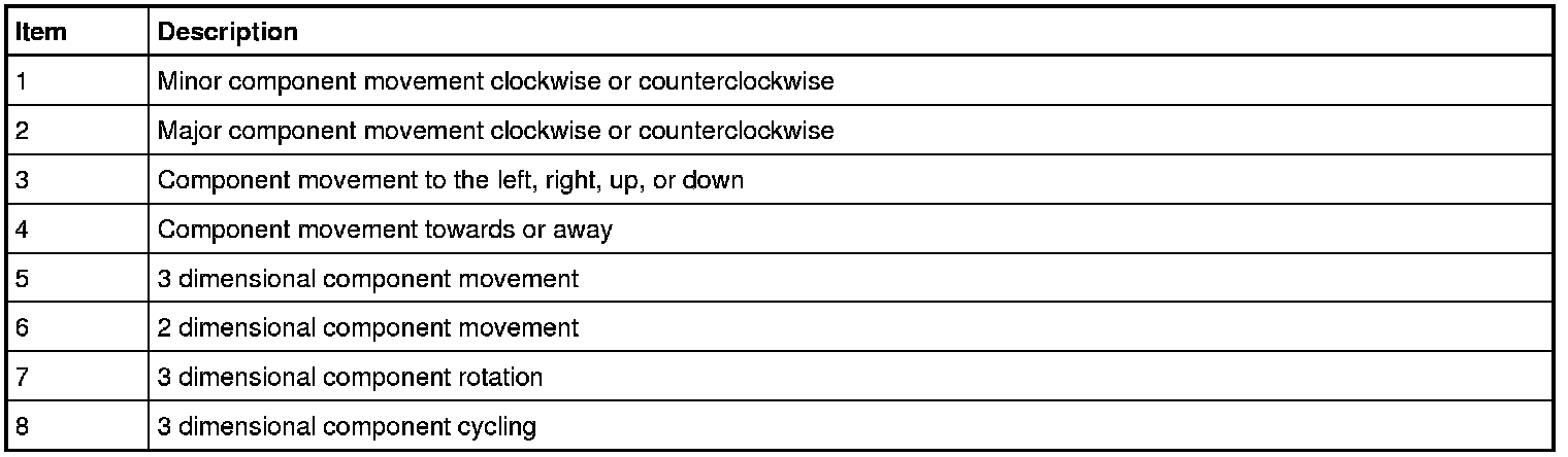 Movement symbols provide detailed information to a required component movement. These component movements can be rotational or 1-3 dimensional movements.