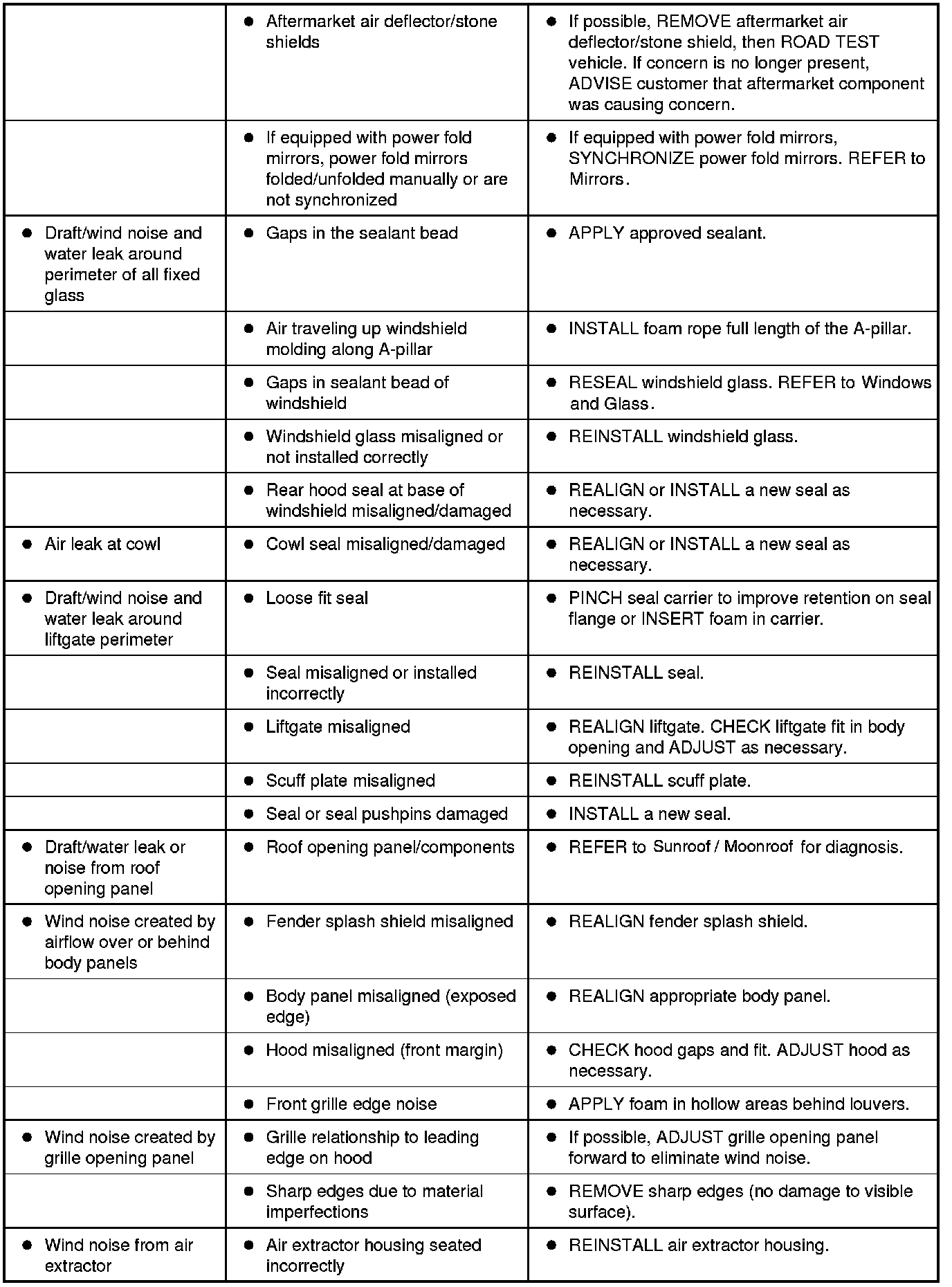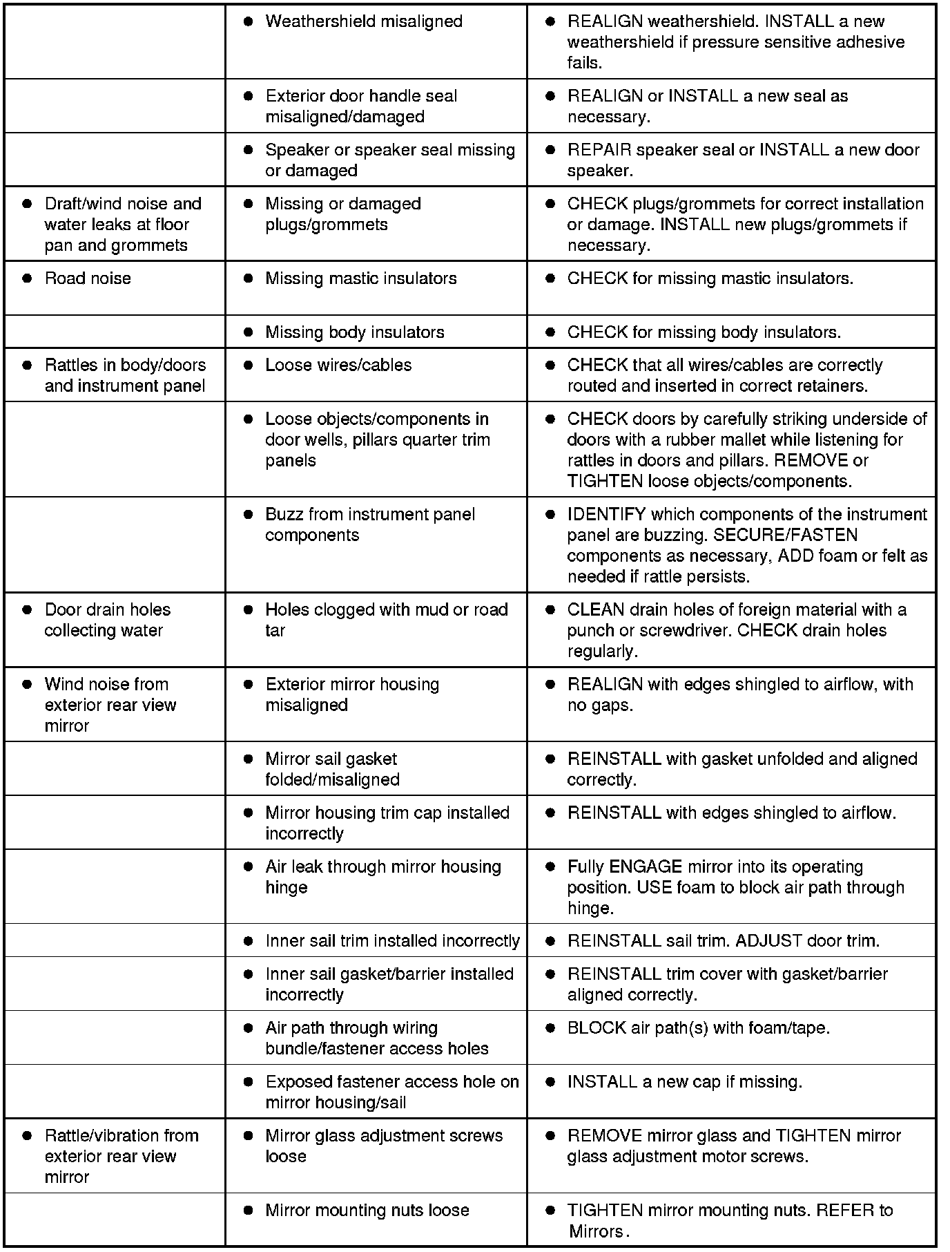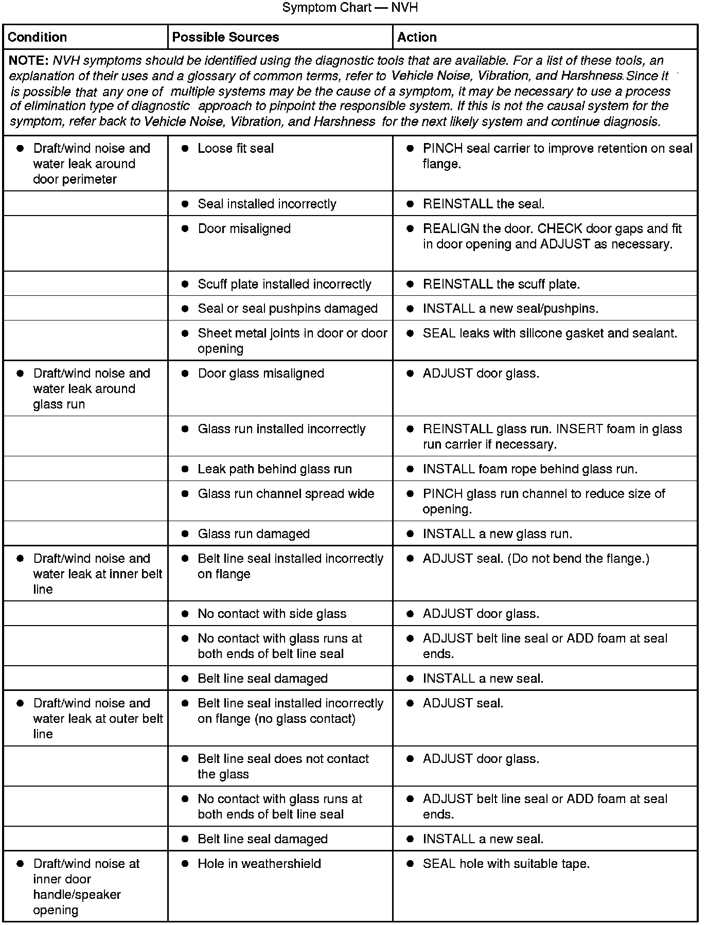 Symptom Chart - NVH