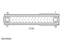 - ABS module C155-8, circuit CBK03 (GY), harness side.