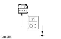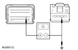 - Measure the resistance between the clutch pedal cruise control deactivator switch C2070-3, circuit GD120 (BK/GN), harness side and ground.