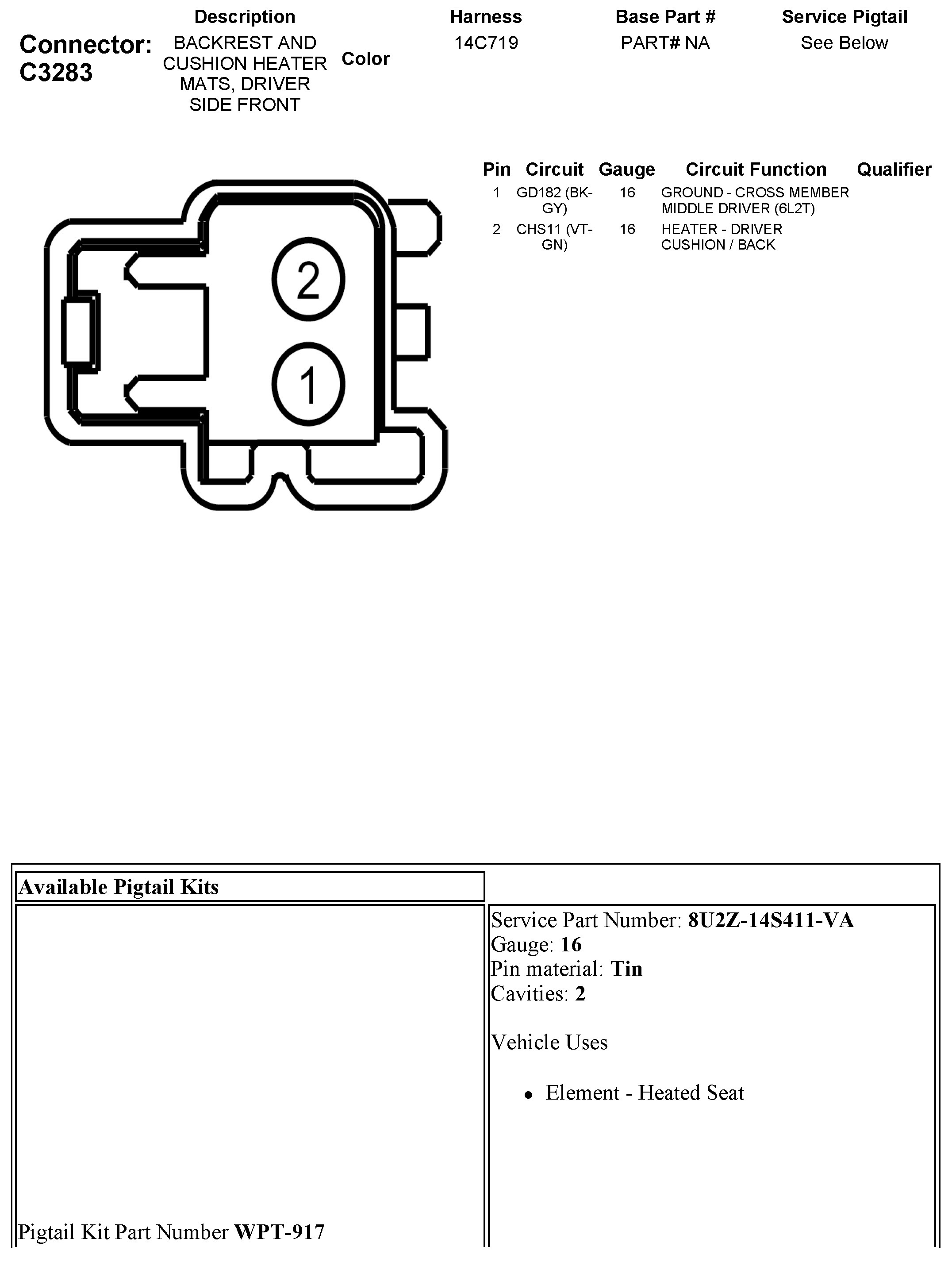 C3283 Backrest And Cushion Heater Mats, Driver Side Front