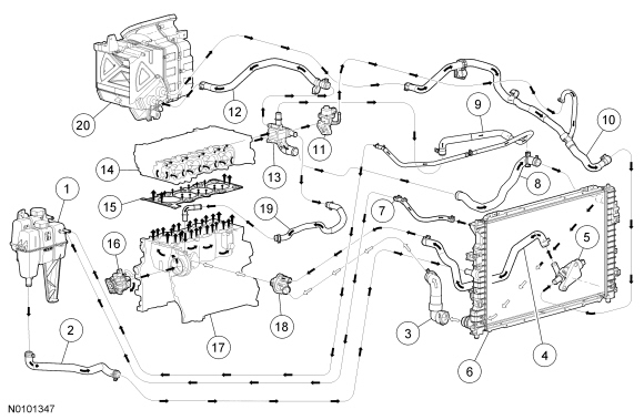 NOTICE: Stop-leak style pellets/products must not be used as an additive in this engine cooling system. The addition of stop-leak style pellets/products can clog or damage the cooling system, resulting in degraded cooling system performance and/or failure.