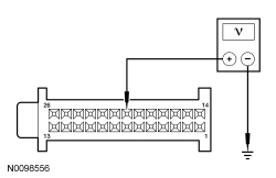 - Measure the voltage between ground and HVAC module C2356B-20, circuit VH413 (WH/BU), harness side.