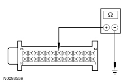 - Measure the resistance between HVAC module C2356B-20, circuit VH413 (WH/BU), harness side and ground.