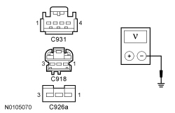 Inoperative Component Connector-Pin Circuit Front interior lamp (vehicles with roof opening panel) C931-3 VLN33 (GY/VT) Front interior lamp (vehicles without roof opening panel) C918-1 VLN33 (GY/VT) Second row interior lamp (vehicles with roof opening panel) C918-1 VLN33 (GY/VT) Cargo lamp C926A-3 VLN33 (GY/VT)
