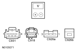 - Measure the voltage between the inoperative courtesy lamp connector, harness side as follows: