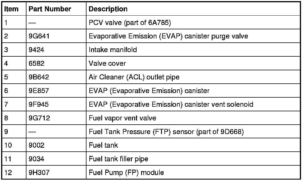 - fuel vapor tube assembly (includes the Fuel Tank Pressure (FTP) sensor).