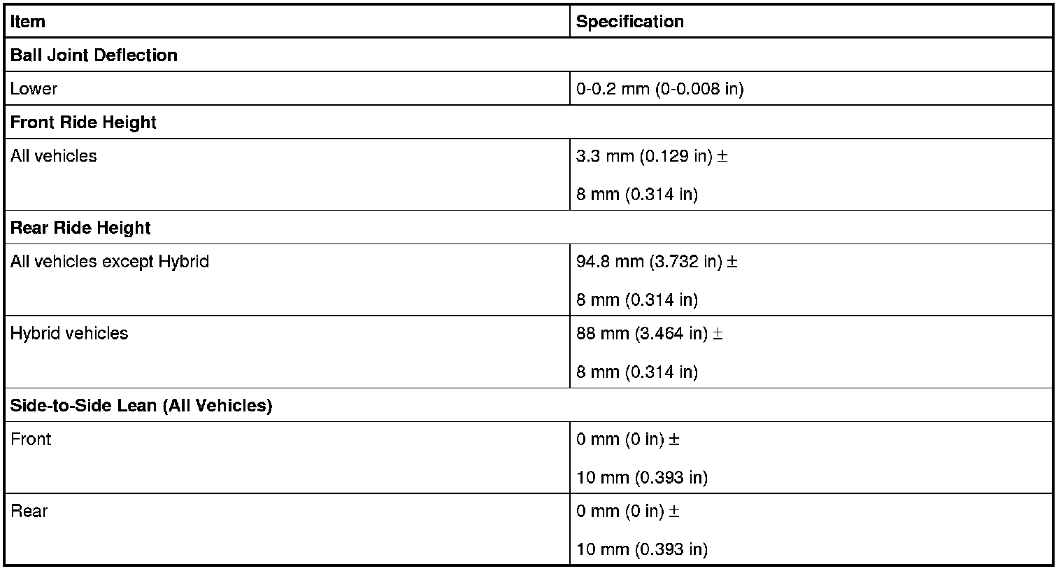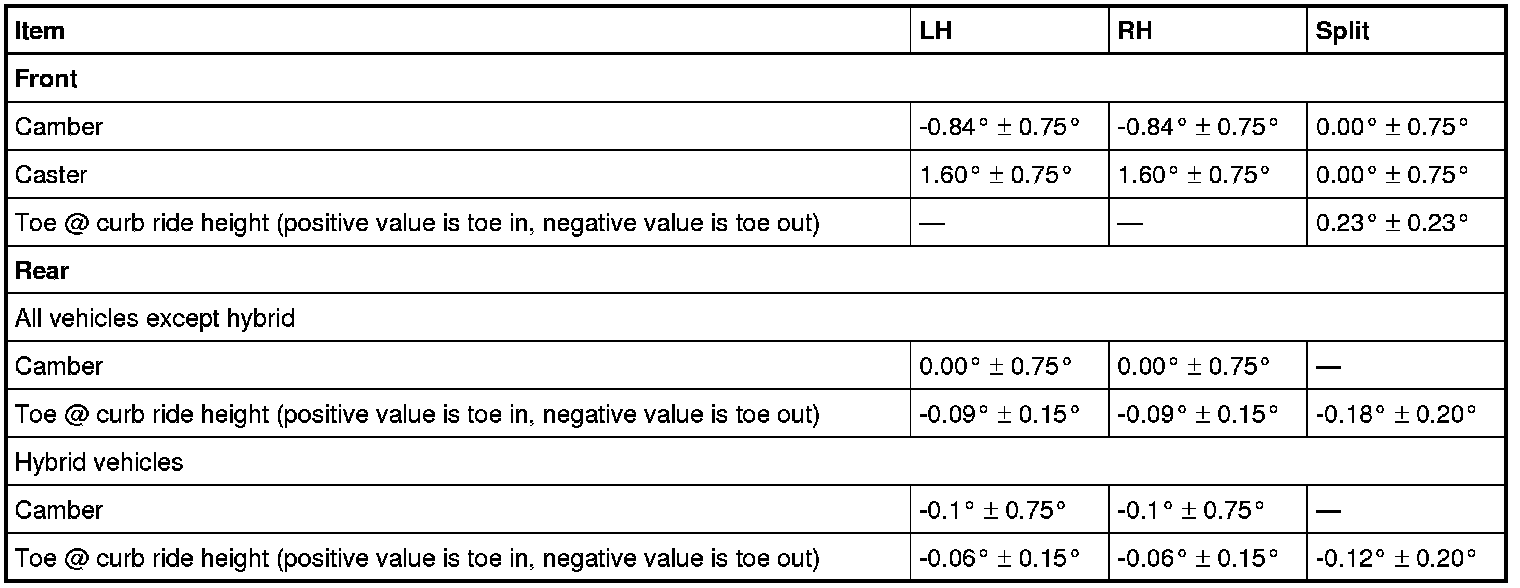 All alignment specifications are with the vehicle fuel tank full.