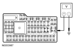 - Measure the voltage between SJB (Smart Junction Box) fuse 27 (20A), input side and ground.