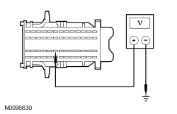 - Measure the voltage between BJB (Battery Junction Box) OTIS (One-Touch Integrated Start) diode, circuit CDC35 (BU/WH), input side and ground.
