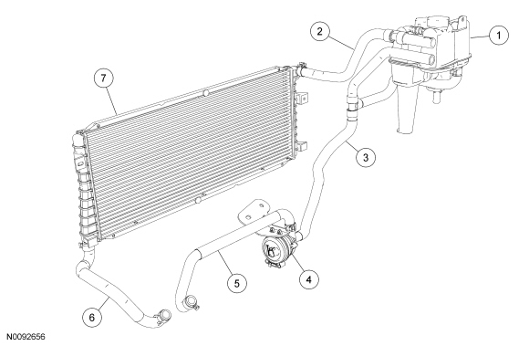 The vehicle uses a pump driven cooling system (referred to as the Motor Electronics Cooling System (MECS)) to transfer heat generated by the eCVT (Electronically Controlled Continuously Variable Transmission) and the Hybrid Electric Vehicle (HEV) battery pack to the atmosphere. The system uses a coolant-to-air radiator design.
