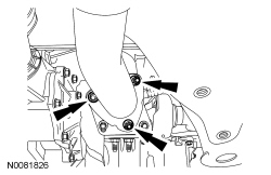 54. Position the PTU (Power Transfer Unit) -to-engine support bracket and install the bolts.