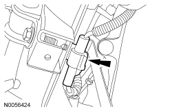 9. Remove and discard the RH front insulator bracket-to-subframe bolt and the bracket.