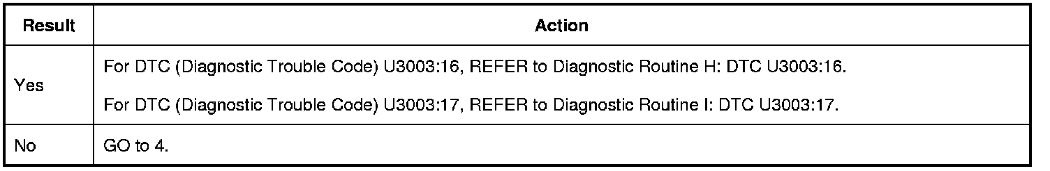 Is DTC (Diagnostic Trouble Code) U3003:16 or DTC (Diagnostic Trouble Code) U3003:17 recorded?
