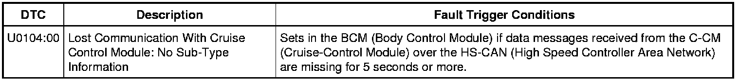 1. Using a scan tool, retrieve the continuous memory DTCs (Diagnostic Trouble Codes) from the C-CM (Cruise-Control Module).