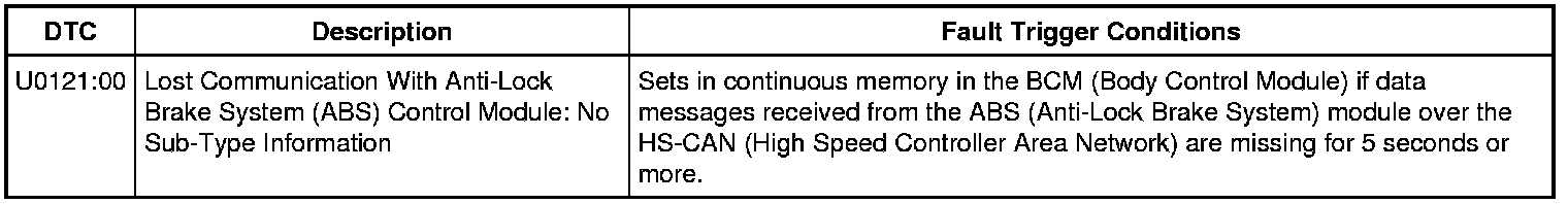 Is DTC (Diagnostic Trouble Code) U0121:00 still present?