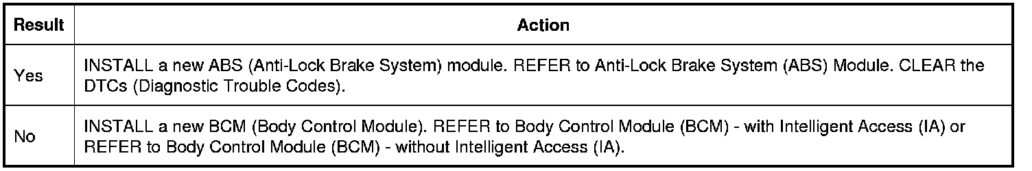 Using a scan tool, clear the DTCs (Diagnostic Trouble Codes). Repeat the BCM (Body Control Module) self-test.