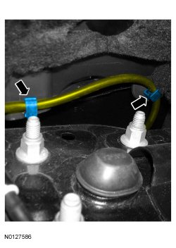 4. Install the washer hose in the retainer clips on the RH (Right Hand) side of the vehicle.