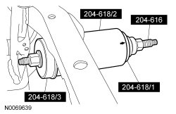 NOTE: When installing the RDU (Rear Drive Unit) bushing, RDU (Rear Drive Unit)204-618 /2 will fall away as the RDU (Rear Drive Unit) bushing is installed into the subframe. The RDU (Rear Drive Unit)204-616 /2 does not control the depth of the bushing. The RDU (Rear Drive Unit) bushing is fully seated when the RDU (Rear Drive Unit)204-616 /2 falls away from the subframe, do not continue to tighten the RDU (Rear Drive Unit)204-616.