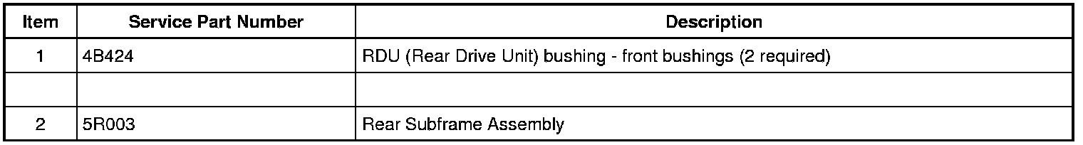 1. NOTE: There are 2 RDU (Rear Drive Unit) front bushings in the rear subframe. This procedure shows how to remove one bushing. The procedure for the remaining RDU (Rear Drive Unit) bushing is identical.