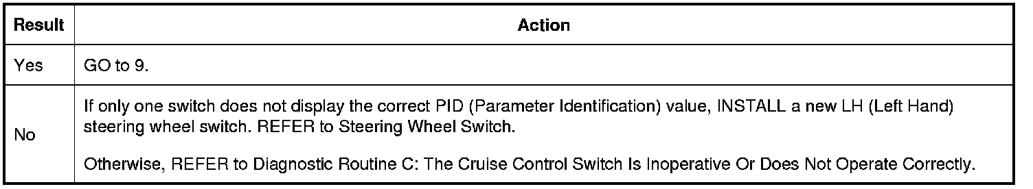 2. Press each cruise control switch while monitoring the cruise control switch PID (Parameter Identification) (SCCS).