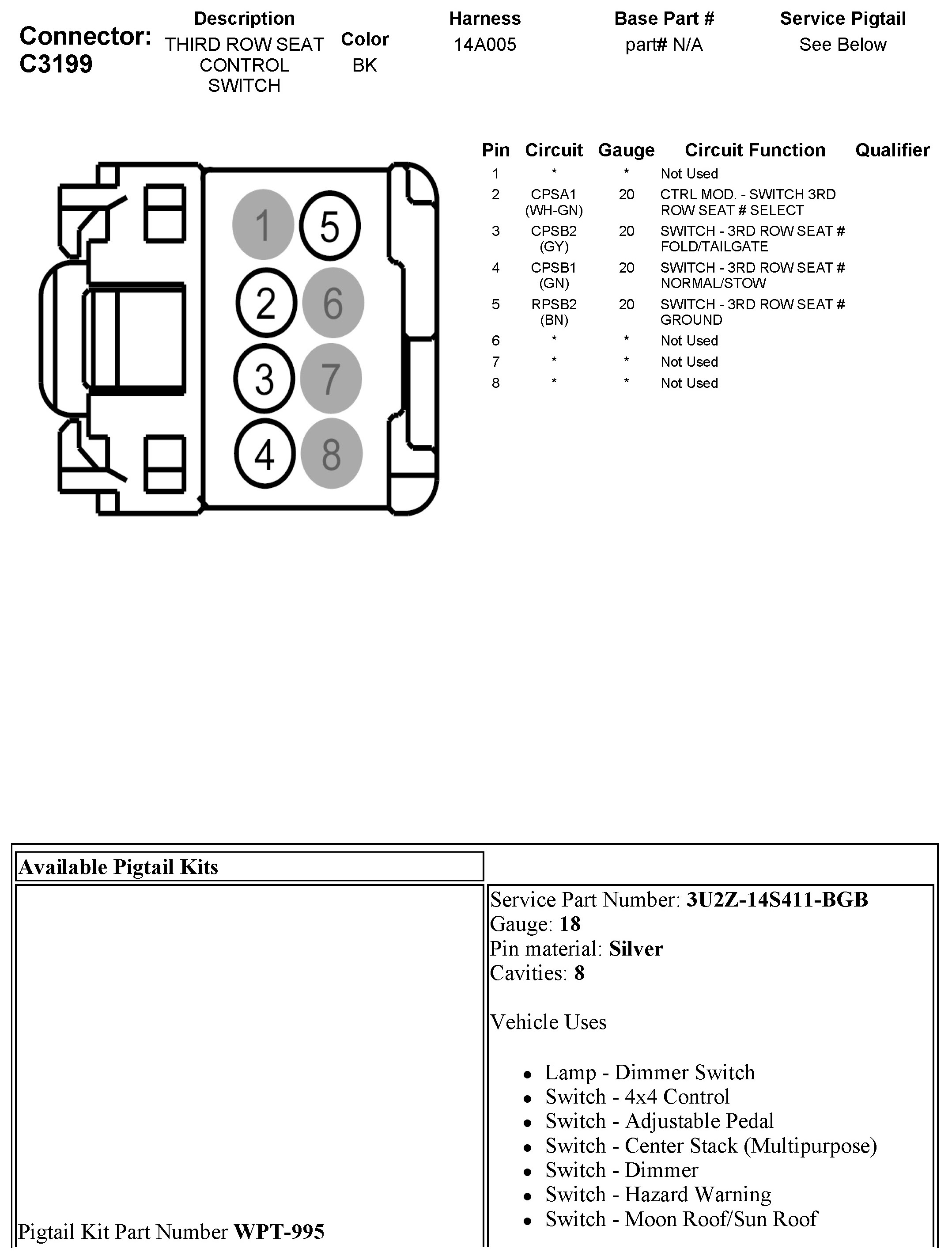 C3199 Third Row Seat Control Switch