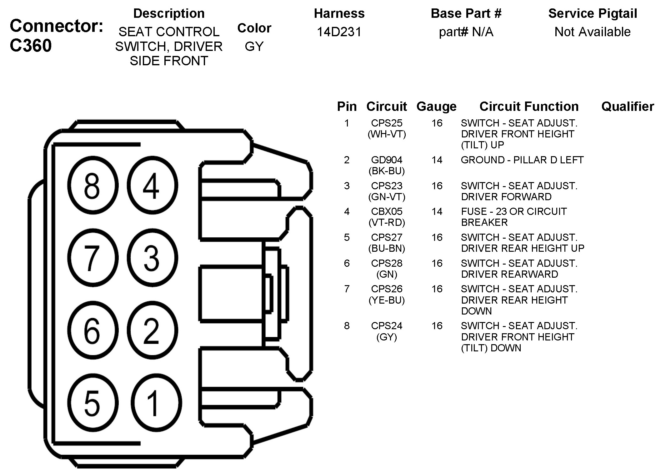 C360 Seat Control Switch, Driver Side Front