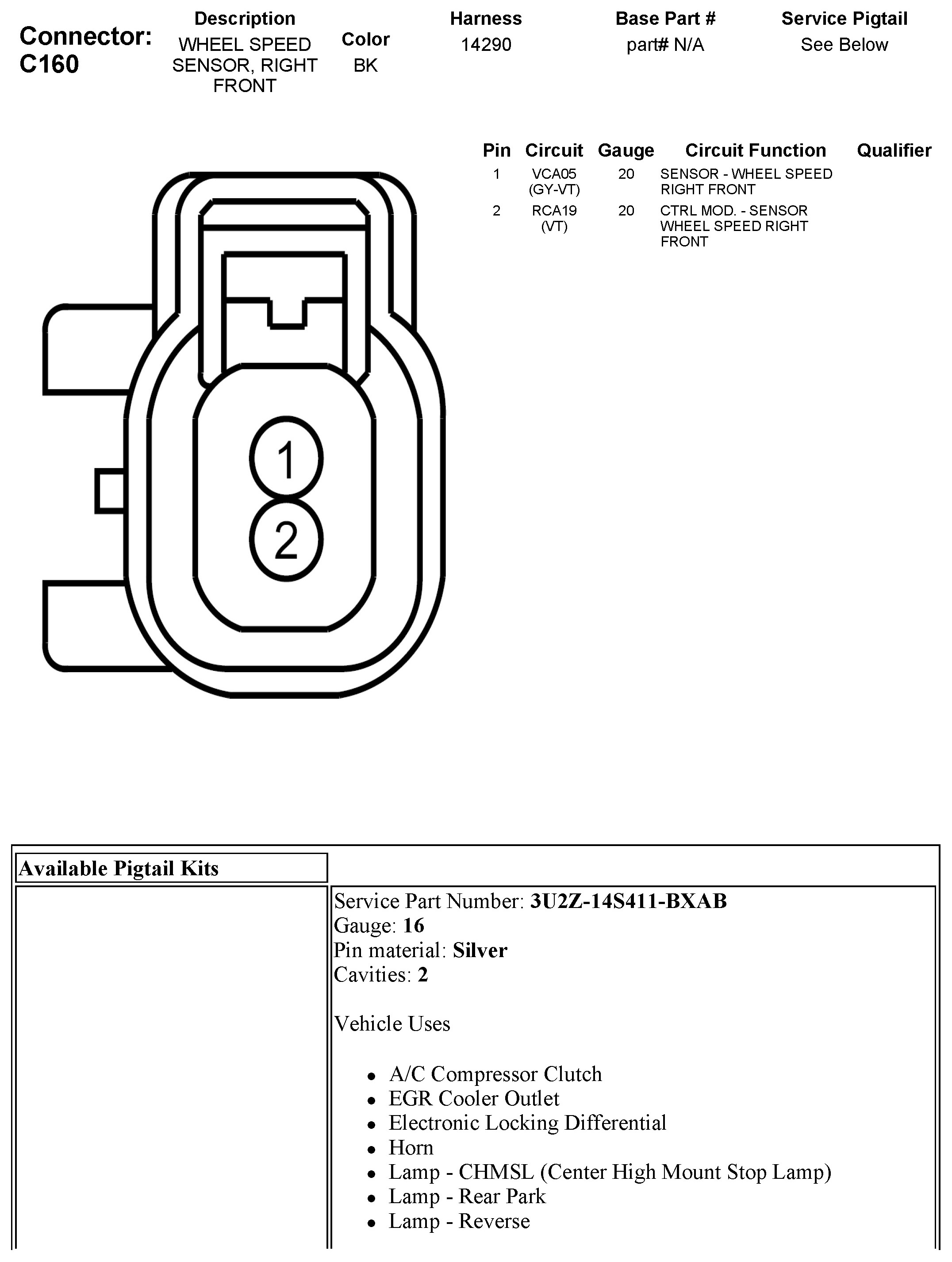 C160 Wheel Speed Sensor, Right Front